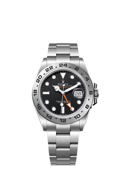 The Explorer II 42mm GMT is the ultimate tool watch for adventurers, mountaineers, and world travelers. Built with robust Oystersteel for unmatched durability, this 42mm timepiece is designed to withstand the harshest environments. Featuring a highly legible 24-hour fixed bezel and an additional orange GMT hand, it allows wearers to track a second time zone effortlessly. Powered by the legendary Rolex Caliber 3285 movement, it ensures superior precision, reliability, and an impressive 70-hour power reserve.